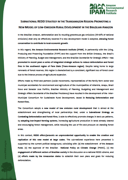 Subnational REDD Strategy in the Transamazon Region: Promoting a new Model of Low-Emission Rural Development in the Brazilian Amazon