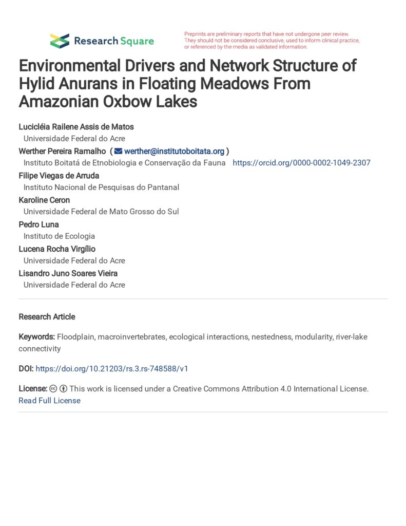 Environmental Drivers and Network Structure of Hylid Anurans (Amphibia: Hylidae) in Floating Meadows from Amazonian Oxbow Lakes