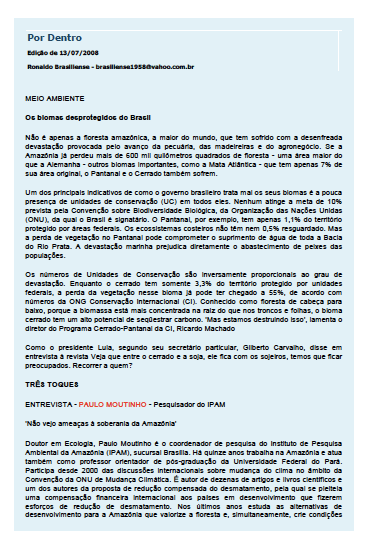 Paulo Moutinho responde entrevista para a revista "Por Dentro" sobre os biomas desprotegidos do Brasil.