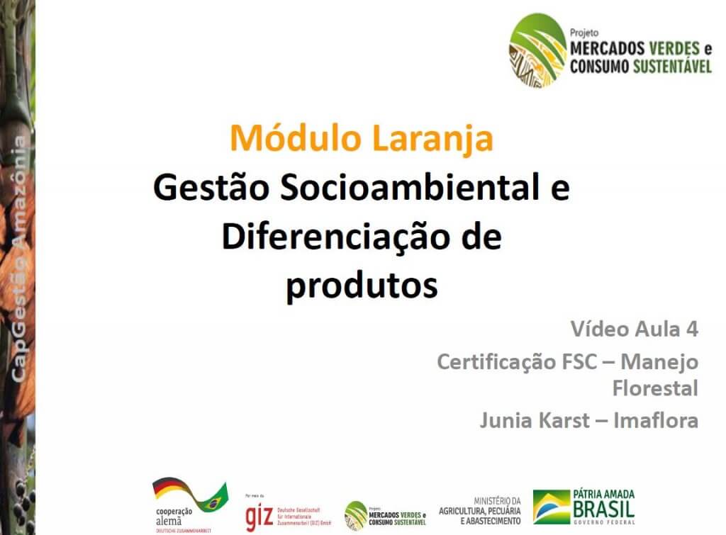 A apresentação, sobre certificação FSC e manejo florestal, faz parte de vídeo-aula 4 do Módulo Laranja, chamado Diferenciação de Mercado, um dos sete temas que compõem o Programa CapGestão Amazônia, realizado pelo Consórcio Eco Consult e IPAM. É parte do projeto...