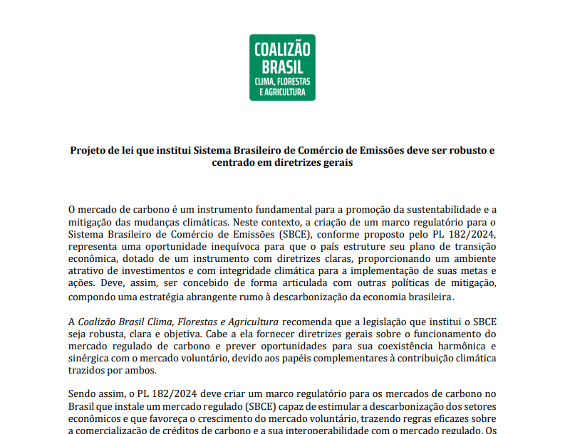 O mercado de carbono é um instrumento fundamental para a promoção da sustentabilidade e a mitigação das mudanças climáticas. Neste contexto, a criação de um marco regulatório para o Sistema Brasileiro de Comércio de Emissões (SBCE), conforme proposto pelo PL...