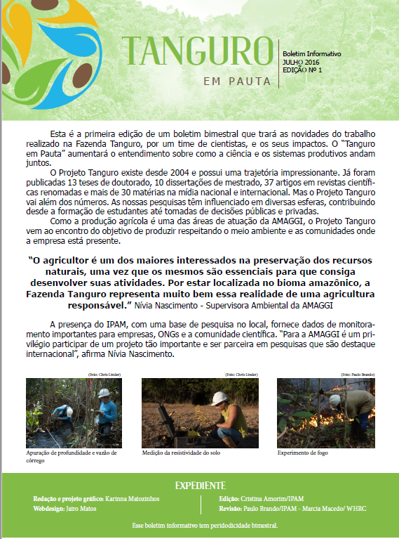 Esta é a primeira edição de um boletim trimestral que traz as novidades do trabalho realizado na Fazenda Tanguro, por um time de cientistas, e os seus impactos. O “Tanguro em Pauta” aumentará o entendimento sobre como a ciência e os sistemas produtivos andam