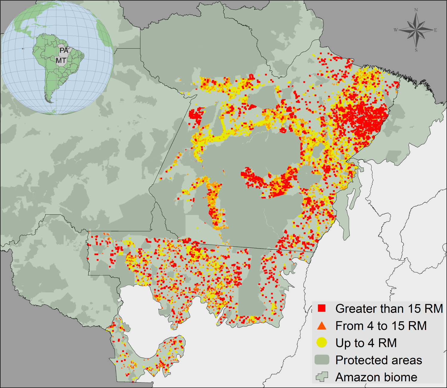 Além de não inibir novas derrubadas, a adesão ao CAR nesses estados também não garantiu a recuperação das áreas desmatadas ilegalmente no passado. Segundo o estudo, 83% das propriedades rurais de Mato Grosso e 77% no Pará precisavam se adequar ao Código Florestal, com um passivo 841 mil hectares e 3,95 milhões de hectares, respectivamente, a serem restaurados.