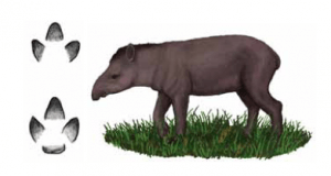 Maior mamífero terrestre da América do Sul, a anta chega a atingir 300 kg. Habita áreas de mata, principalmente nas proximidades de riachos e rios. De hábito solitário e noturno, alimenta-se de folhas, frutos e brotos. A pegada de uma anta apresenta, frequentemente, três dedos largos e curtos, arredondados nas extremidades e com o dedo médio sempre maior que os demais. O comprimento da pegada varia de 12 a 15 cm e de 12 a 14 cm de largura. Dependendo das condições do solo, é possível notar a presença de um quarto dedo na parte posterior.