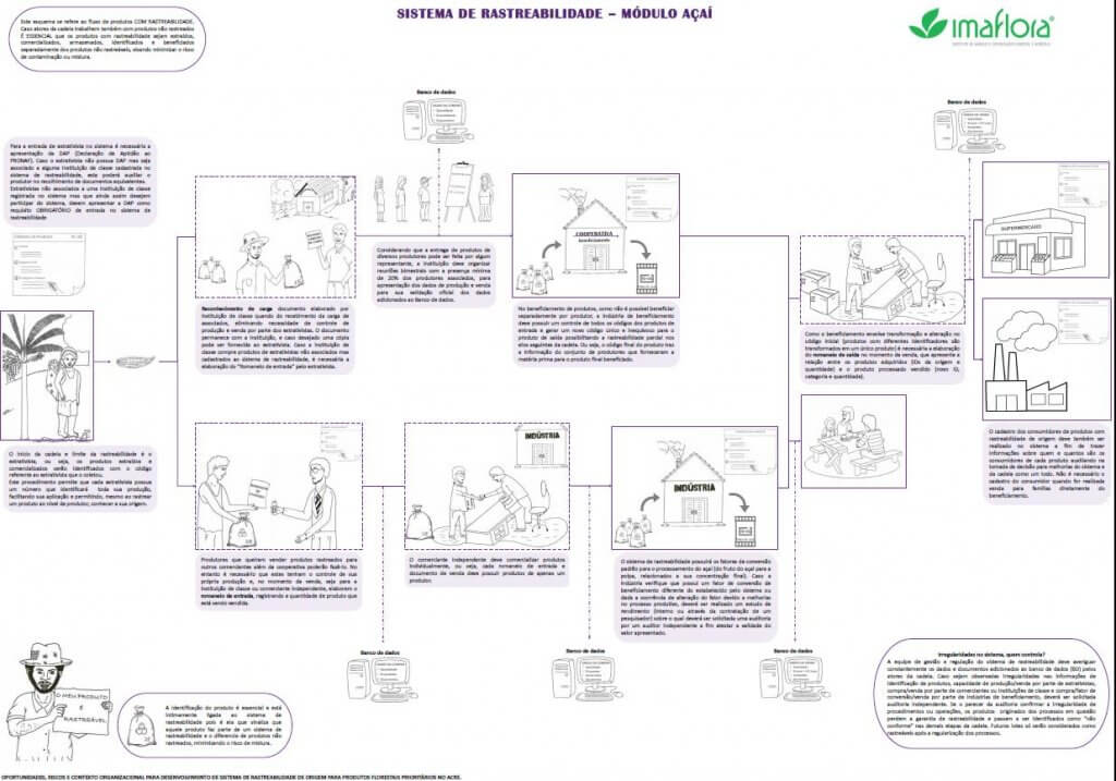 Este esquema, referente ao fluxos de produtos com rastreabilidade da cadeia do açaí, faz parte do Módulo Laranja, chamado Diferenciação de Mercado, um dos sete temas que compõem o Programa CapGestão Amazônia, realizado pelo Consórcio Eco Consult e...