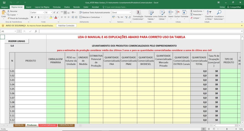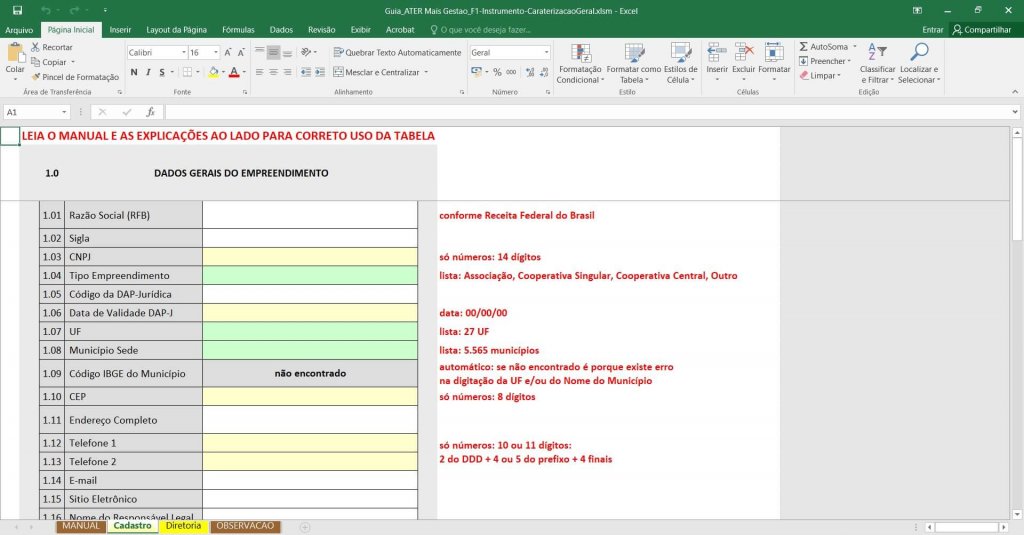 Tabela "Sistematização do Cadastro do Empreendimento" adicional ao Guia Metodológico - Programa Ater Mais Gestão. O material faz parte do programa de capacitação Ater Mais Gestão, uma inciativa do Projeto Mercados Verdes e Consumo Sustentável, implementado pelo...