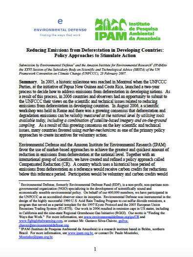 Submission by Environmental Defense and the Amazon Institute for Environmental Research (IPAM) to the XXVI Session of the Subsidiary Body on Scientific and Technological Advice (SBSTA) of the UN Framework Convention on Climate Change (UNFCCC), February 23...