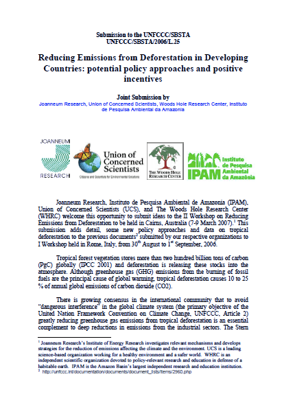 Joanneum Research, Instituto de Pesquisa Ambiental de Amazonia (IPAM), Union of Concerned Scientists (UCS), and The Woods Hole Research Center (WHRC) welcome this opportunity to submit ideas to the II Workshop on Reducing Emissions from Deforestation to be held in...