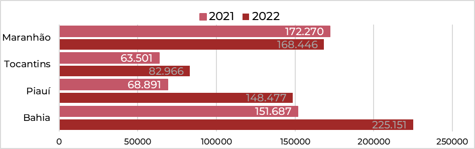 Segundo o levantamento, a área desmatada cresceu em todos os estados da região. Na Bahia, estado que lidera o ranking, foram detectados 225 mil hectares desmatados, 48% a mais do que no ano passado. Maranhão e Tocantins registraram 168 mil e 83 mil hectares desmatados, respectivamente. O maior aumento na área devastada, no entanto, foi observado no Piauí, que saltou 115% em relação ao ano anterior, chegando a cerca de 152 mil hectares em 2022.