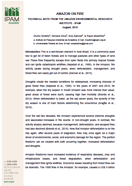 The Brazilian Amazon is still on fire. The 2019 burning season, which captured the attention of Brazil and the world in recent weeks, is not over yet. Government action at the federal and state levels in the fight against wildfires is still essential, just as it is...