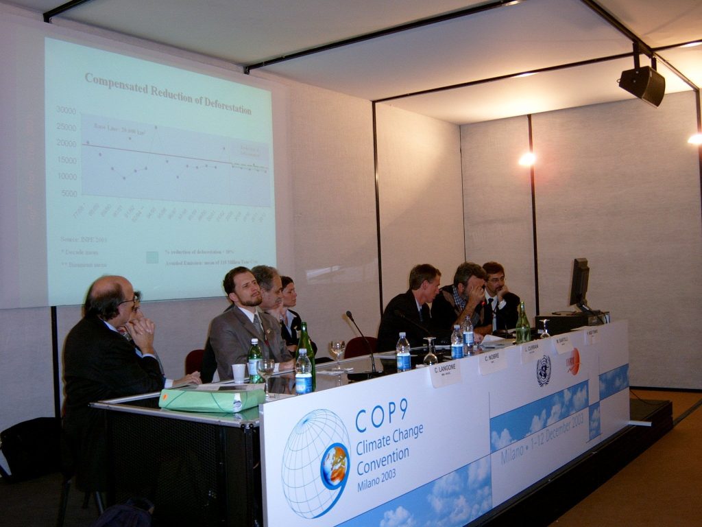 Apresentação do conceito de redução compensada do desmatamento na COP de Milão em 2003 (Acervo IPAM)