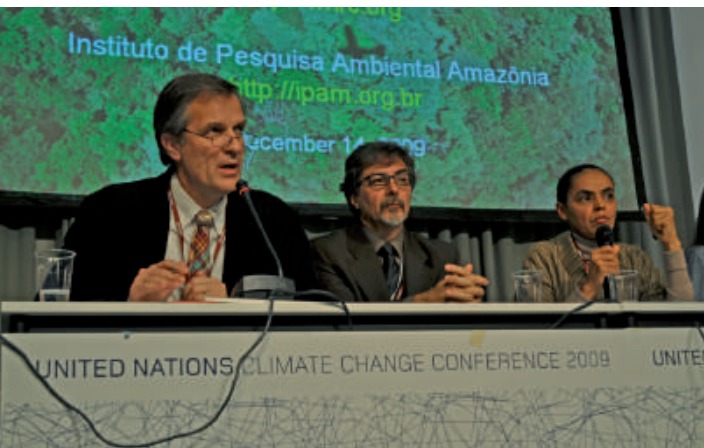 Evento do IPAM na COP15 de Copenhague em 2009, com a presença de Marina Silva, na época senadora pelo Acre e ex-ministra do Meio Ambiente (Acervo IPAM)